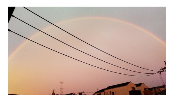 ![]() 最後に、帰りのバスは早めに帰路につき、渋滞もなく順調で、予定よりも約30分早く、大宮駅西口の「シーノ大宮」に戻ってくることができました。そして、家に帰ると浦和の空に、大きくてはっきりとした太い虹がでていたので、とても幸せな気持ちになりました。 |